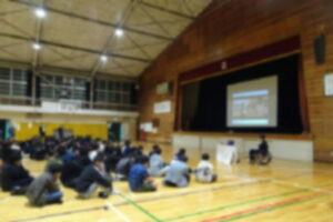 本年度の人権講演会は中村珍晴様をお招きし、「私は車いすにのっている。それだけのこと」という演題で、ご講演をいただきました。ご自身の体験により、「今が一番幸せである」と言い切れるようになるまでの想いを語っていただきました。生徒たちにとっても生きていくうえで少しでも力になればと願っています。